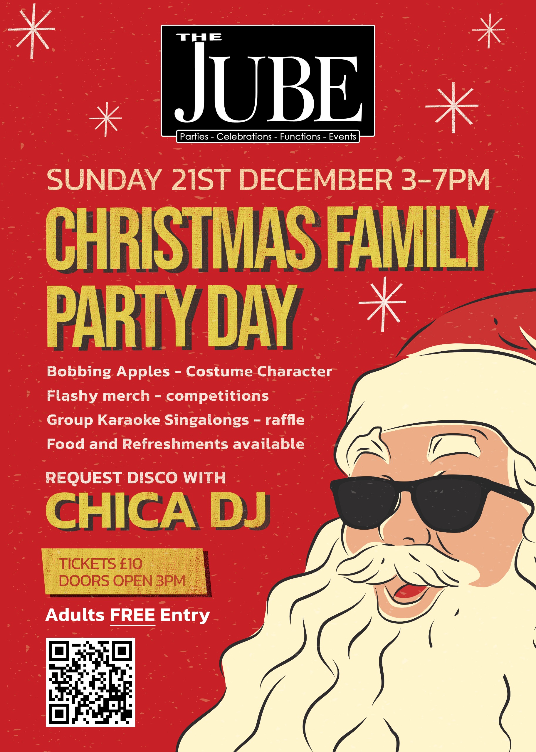 Christmas Family Day Party 3-7pm – Sun 21st Dec – £10 per child – Adults Free Entry